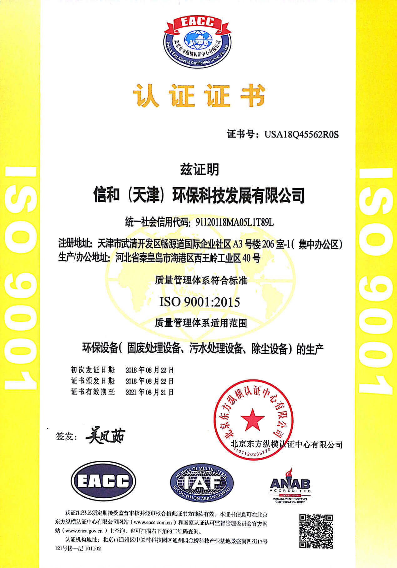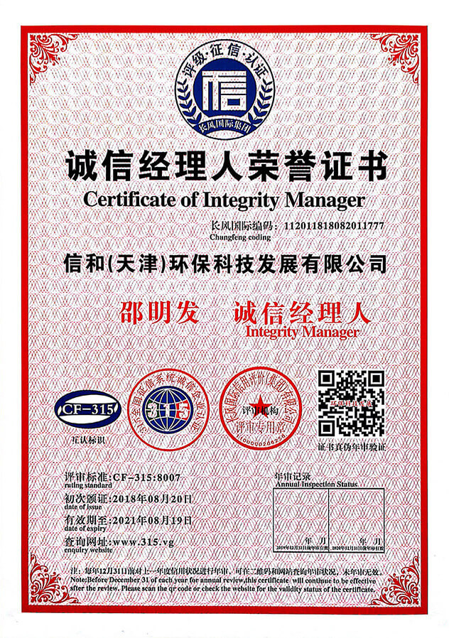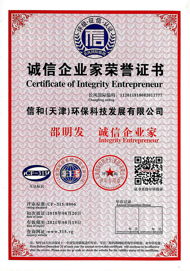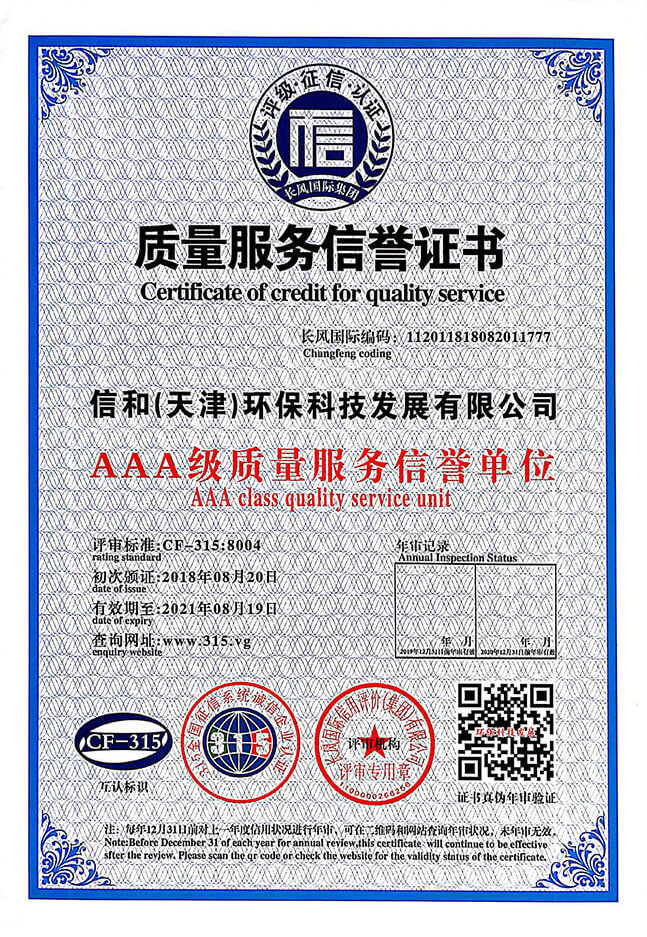 以“專業(yè)、誠(chéng)信、創(chuàng)新、環(huán)保”為核心理念。專業(yè)從事環(huán)保設(shè)備研發(fā)的生產(chǎn)型高新企業(yè),為客戶提供專業(yè)的環(huán)保設(shè)備。擁有《中華人民共和國(guó)進(jìn)出口資格證》和《中國(guó)環(huán)境保護(hù)產(chǎn)品認(rèn)證證書》。產(chǎn)品通過ISO9001質(zhì)量管理體系認(rèn)證、ISO4110環(huán)境管理體系認(rèn)證、ISO18001職業(yè)健康管理體系認(rèn)證。