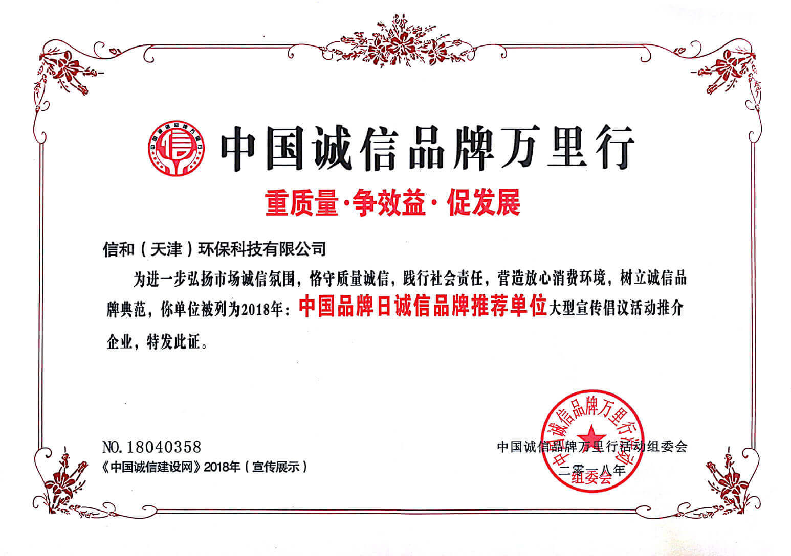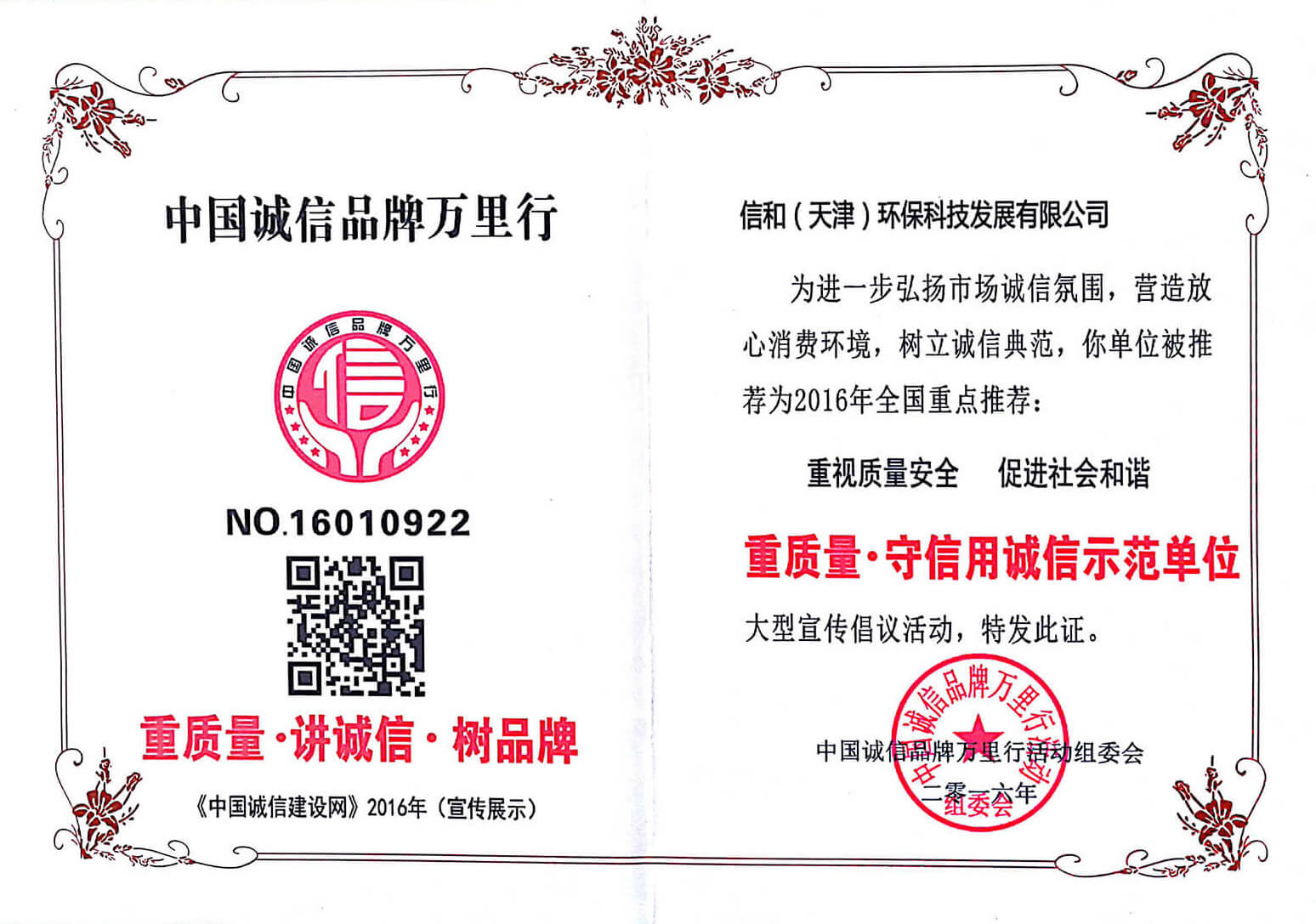 “質(zhì)量就是生命”。信和重質(zhì)量、守信用,被中國(guó)誠(chéng)信品牌萬(wàn)里行推薦“誠(chéng)信示范單位”、“AAA資信等級(jí)”、“AAA級(jí)誠(chéng)信經(jīng)營(yíng)示范單位”、“誠(chéng)信經(jīng)理人榮譽(yù)證書”、“誠(chéng)信企業(yè)家榮譽(yù)證書”、“中國(guó)產(chǎn)品質(zhì)量放心達(dá)標(biāo)企業(yè)”、“誠(chéng)信品牌聯(lián)盟會(huì)員單位”、“中國(guó)質(zhì)量誠(chéng)信AAA級(jí)品牌企業(yè)”、“中國(guó)百?gòu)?qiáng)優(yōu)秀企業(yè)”、“節(jié)能環(huán)保推廣產(chǎn)品”、“全國(guó)科技創(chuàng)新企業(yè)”等榮譽(yù)稱號(hào)。